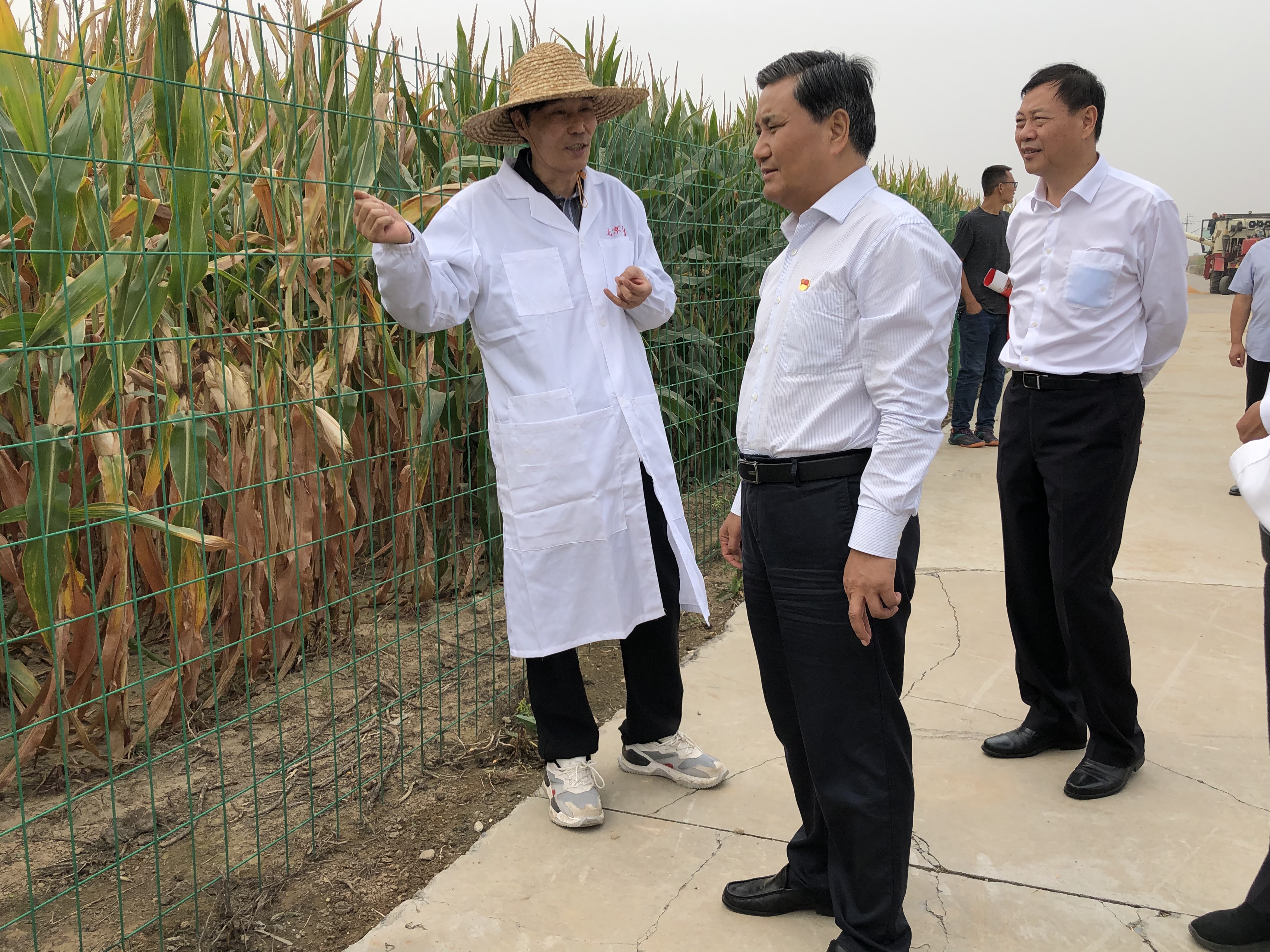 9月27日,河南省副省長武國定在省農(nóng)業(yè)農(nóng)村廳、鄭州市政府、滎陽市委市政府等主要領(lǐng)導(dǎo)陪同下蒞臨北京聯(lián)創(chuàng)種業(yè)有限公司(以下簡稱聯(lián)創(chuàng)種業(yè))鄭州滎陽育種基地,深入田間調(diào)研“三秋”生產(chǎn)相關(guān)工作,聯(lián)創(chuàng)種業(yè)董事長王義波全程陪同。