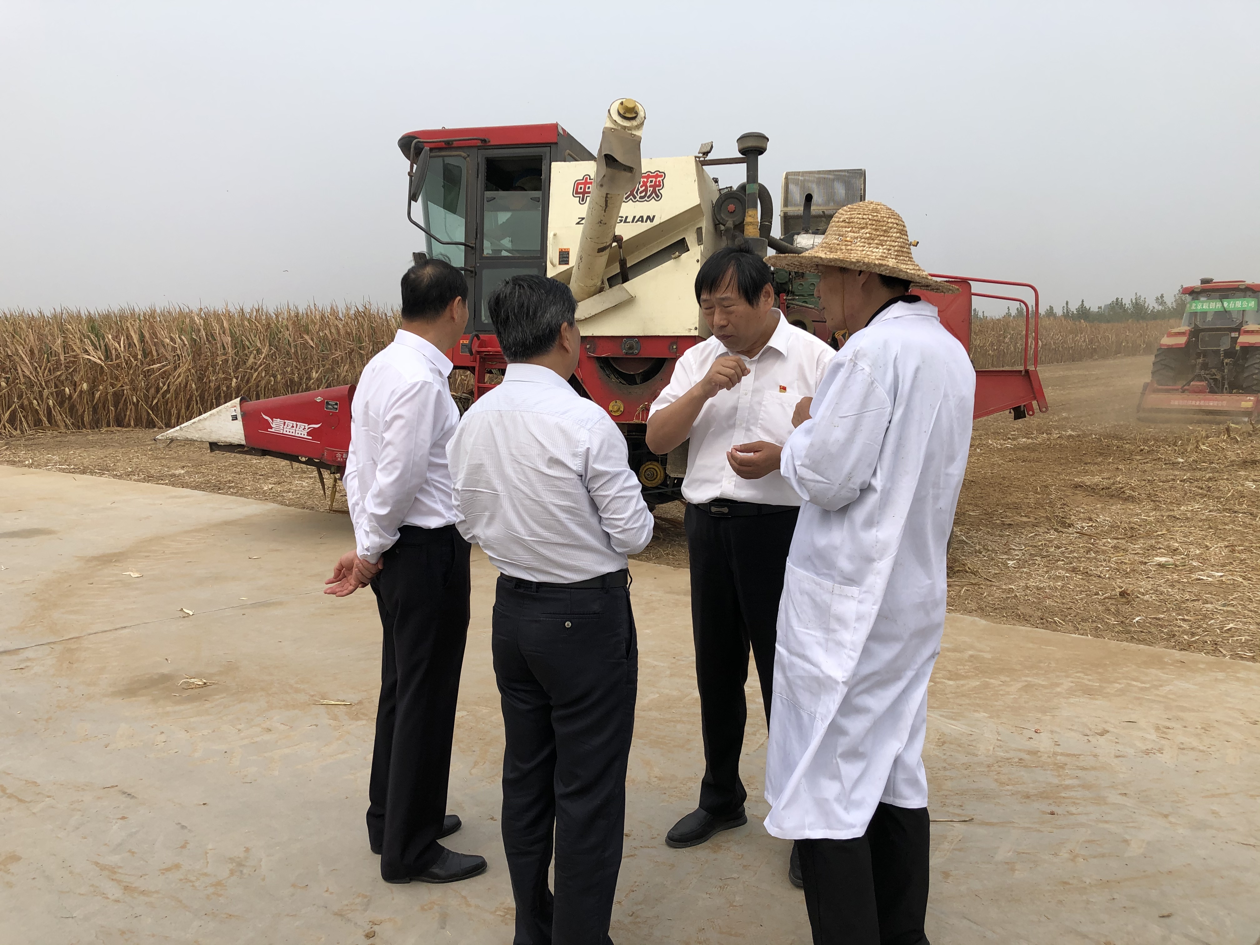 王義波董事長陪同武國定副省長一行深入田間觀看了玉米籽粒機收、秸稈還田等秋收現(xiàn)場,并向副省長匯報了當(dāng)前“三秋”生產(chǎn)工作開展情況。期間武國定副省長及各位領(lǐng)導(dǎo)親自到試驗地里查看了玉米長勢,掰下成熟的玉米果穗和王義波進行了現(xiàn)場交流,并蹲在地里撥開粉碎后的玉米秸稈查看秸稈還田情況,對聯(lián)創(chuàng)種業(yè)的各項工作開展情況給與了充分肯定。